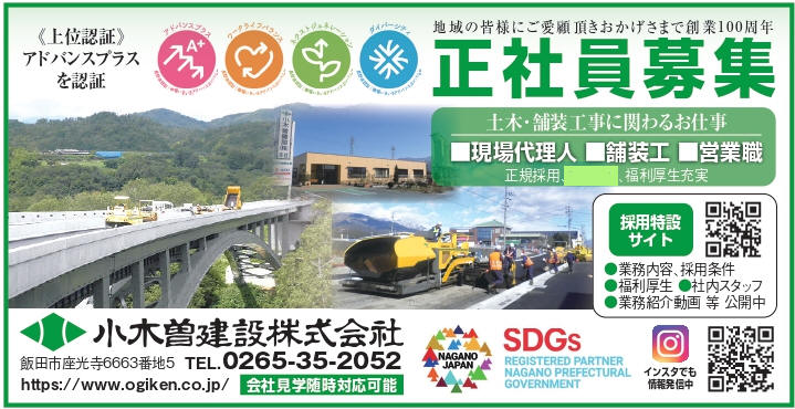 飯田下伊那地域で土木・舗装工事を得意とする、地域密着型の建設会社です。